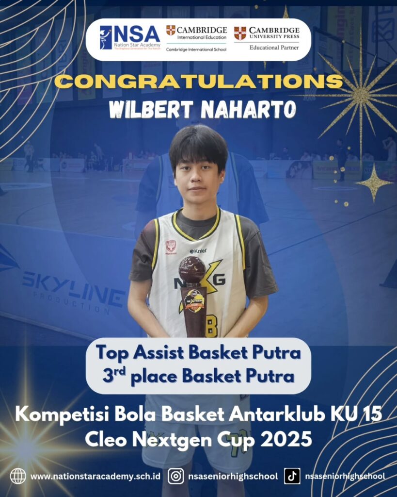 We are proud of Wilbert Naharto for achieving Top Assist and leading his team to 3rd Place at the U15 Inter-Club Basketball Competition at Cleo Nextgen Cup 2025.